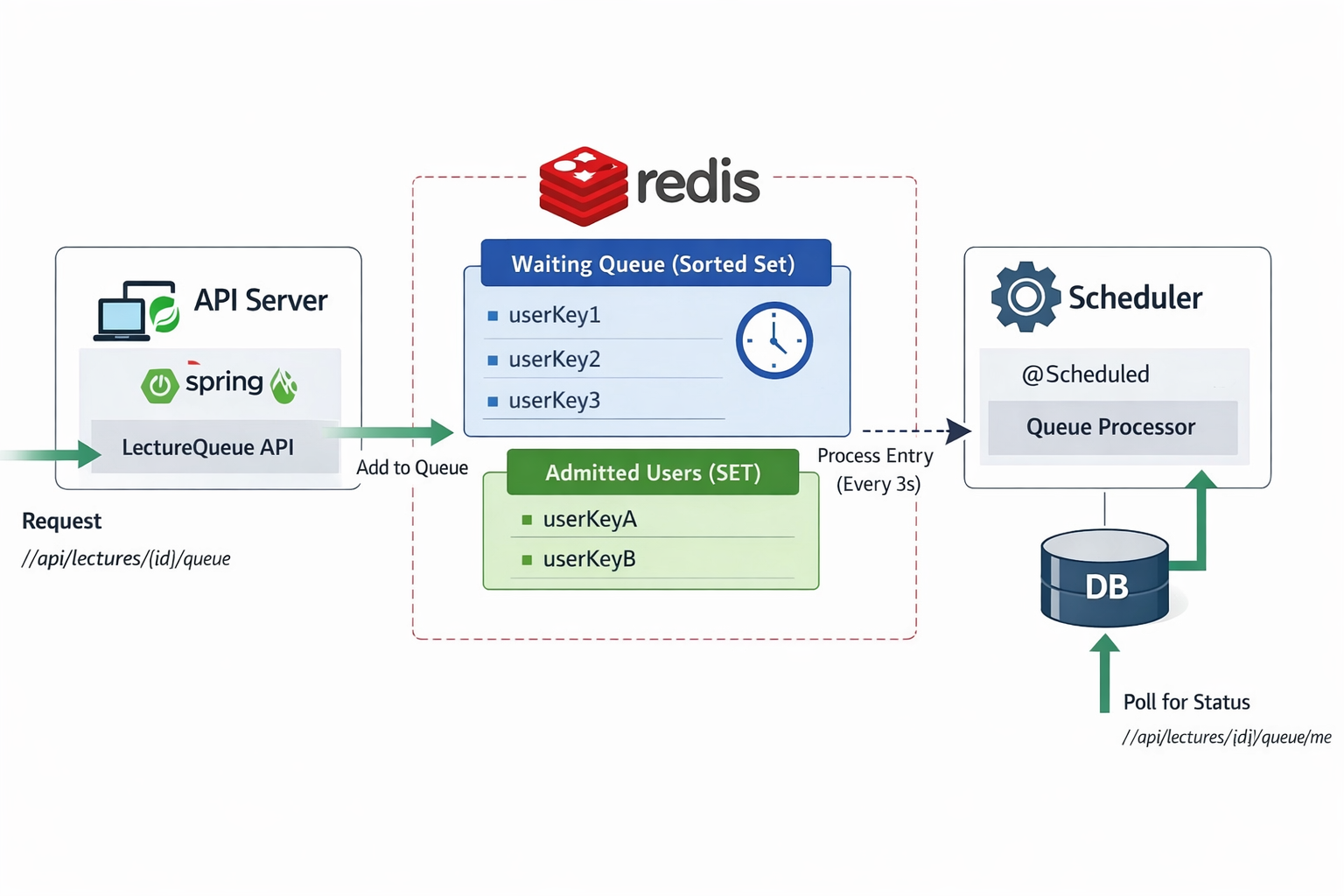 - queue:lecture:{id} → ZSET (대기 중)